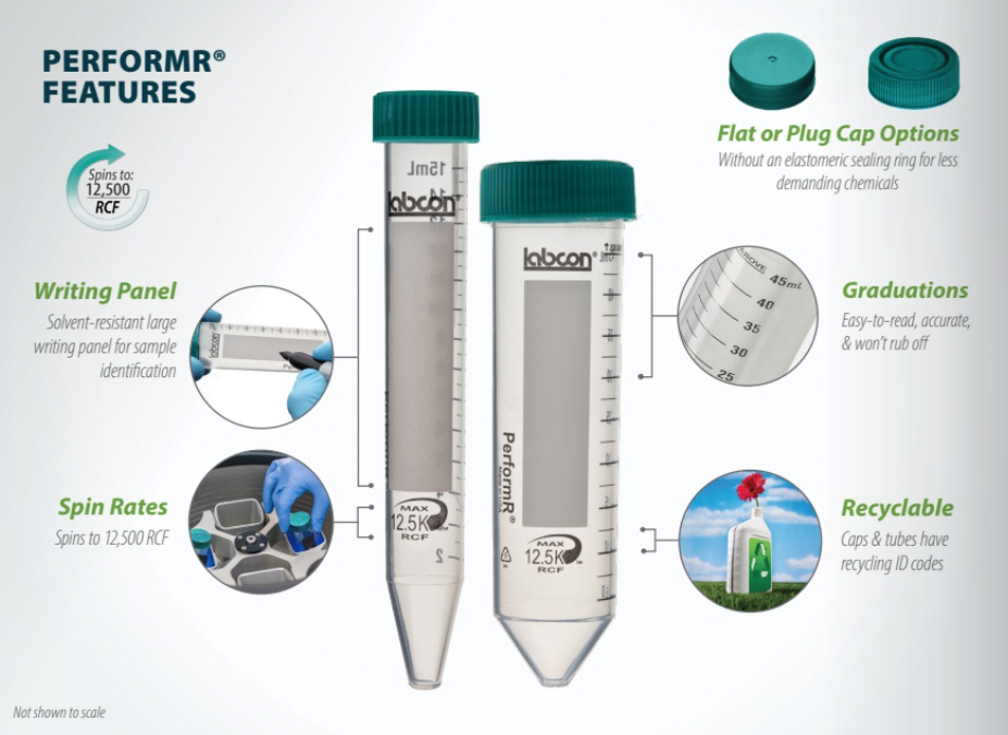Our PerformR® centrifuge tubes combine reliable performance in major centrifuges. Spin rates higher than most popular brands. And high quality lab certified non cyto-toxic medical grade resin. With PerformR® you don’t have to compromise your work with low quality tubes. Our PerformR® Centrifuge Tubes are developed using our own in-house laboratory and tested in real labs in most basic centrifuging procedures.