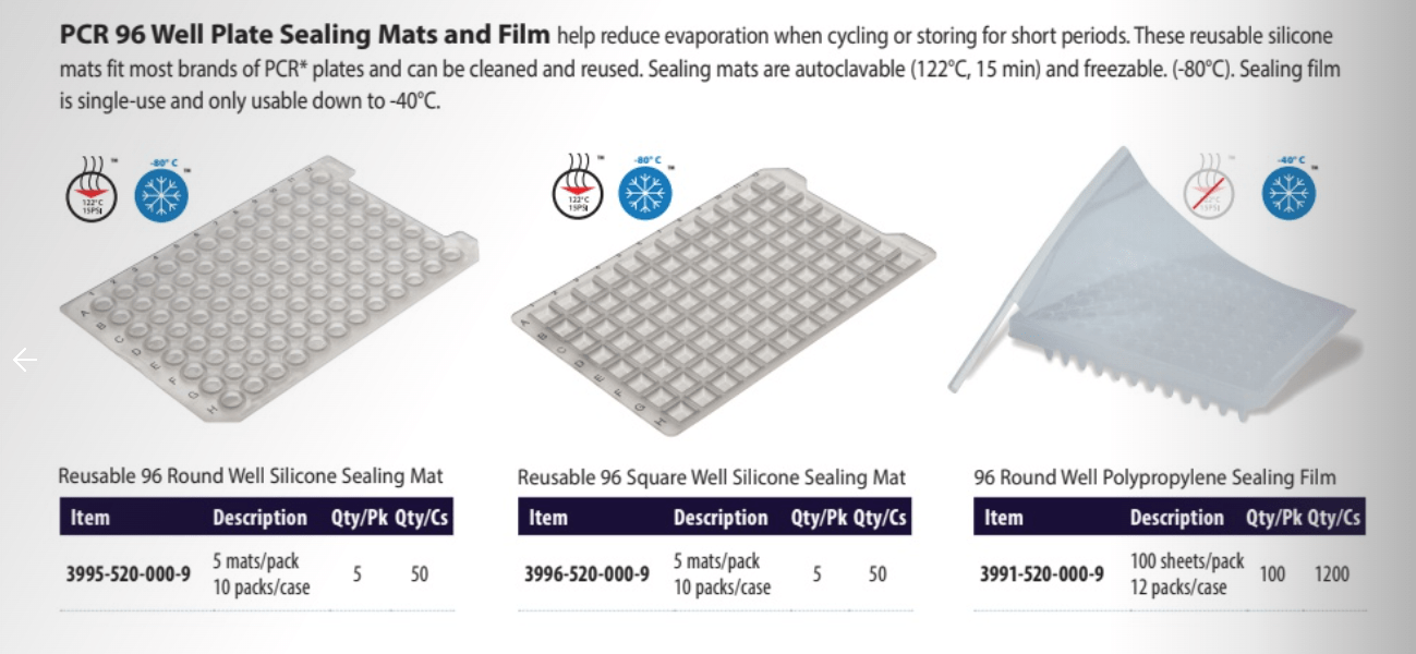 PurePlus® plates are available for standard and real-time versions that fit most standard thermocylers. These plates can be sealed with our strip caps, film, or our reusable silicone sealing mat. All our semi-skirted and fully skirted plates are available in a bar coded version in either natural or white for those machines that use fluorescence to quantify processing.