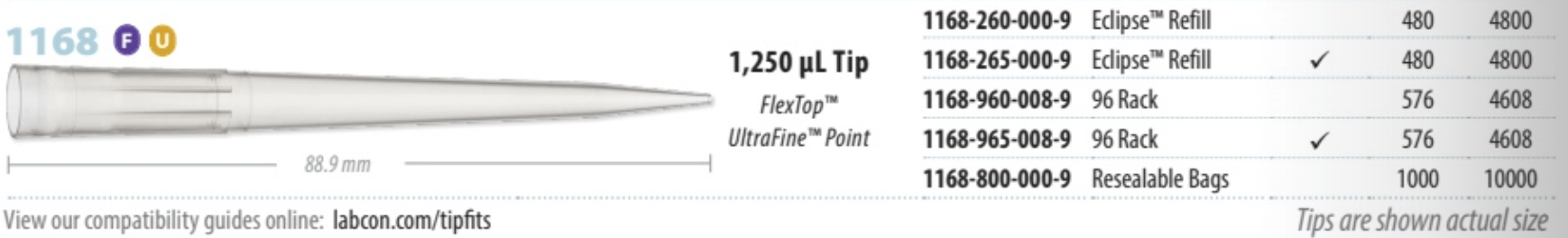 TIP SUPERSLIK 1250UL 96 Rack Package 576 Case 4608
