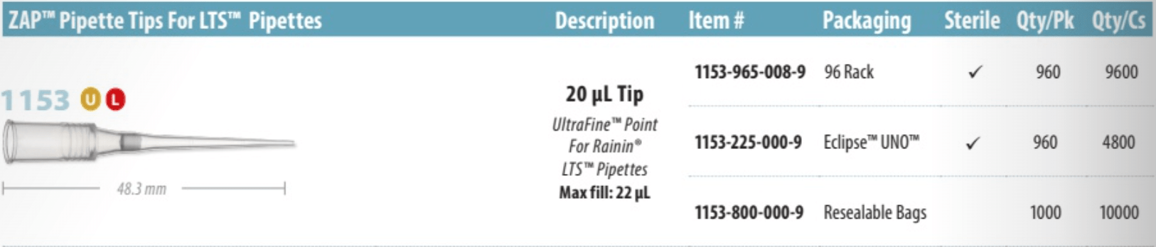 TIP 20UL ZAP LTS ECLIPSE UNO Sterile Package 960 Case 4800